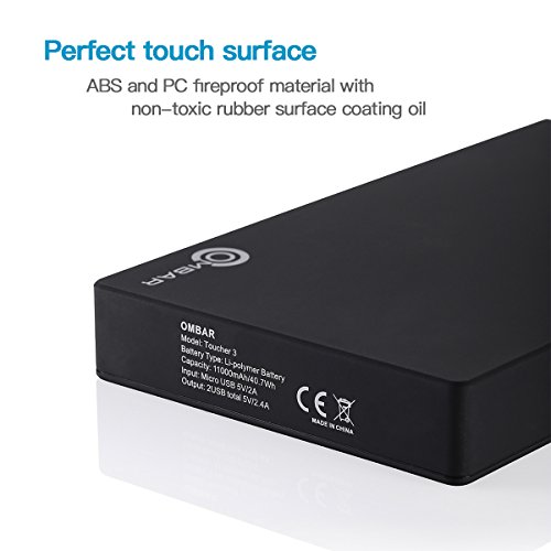 OMBAR Toucher3 11000mAh Li-polymer Power Bank External Battery Portable Charger for iPhone Samsung and More