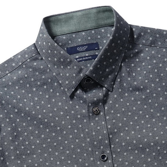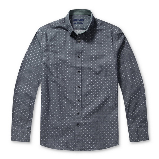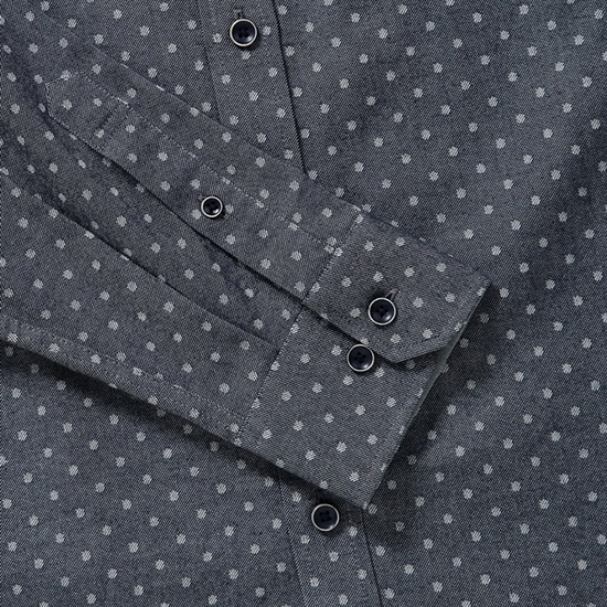- 트윌 조직 바탕에 도트를 적용한 남성 셔츠.