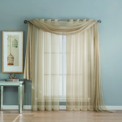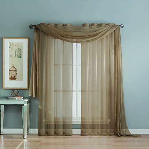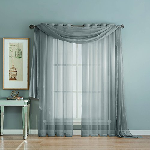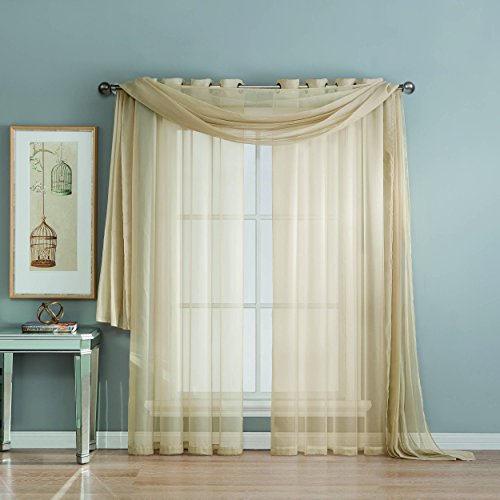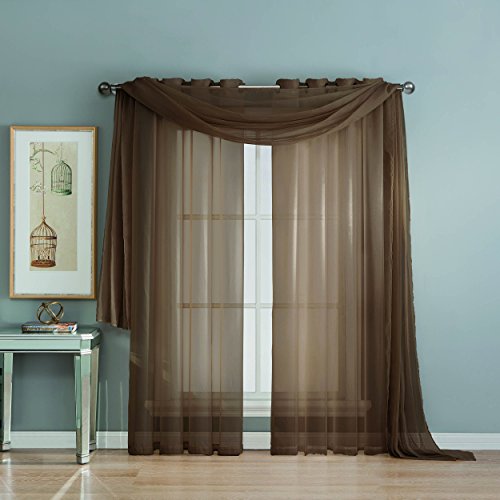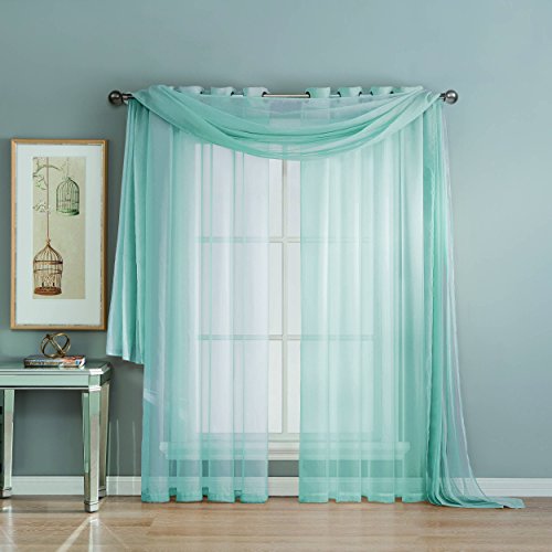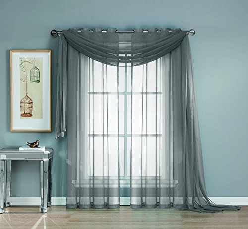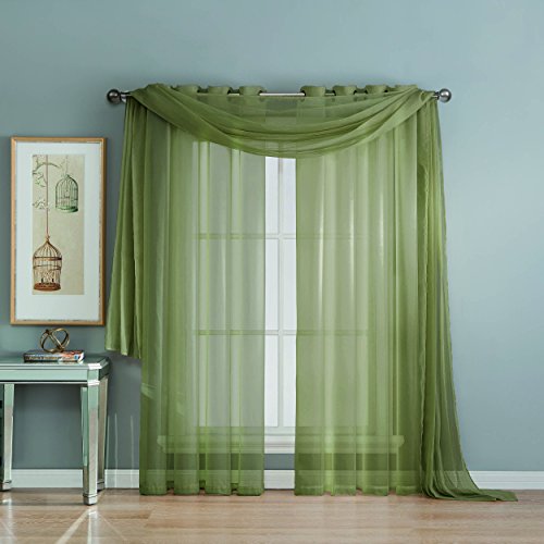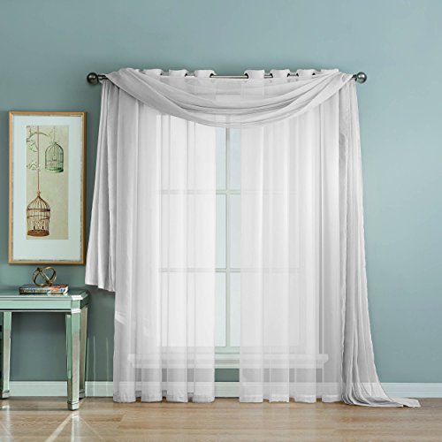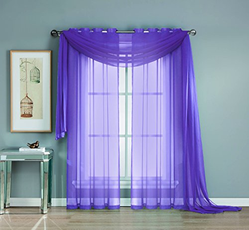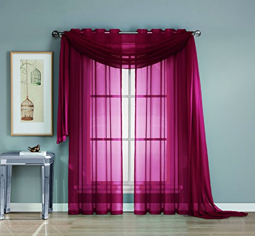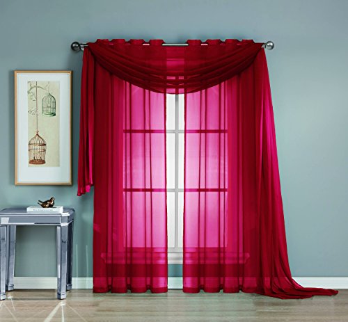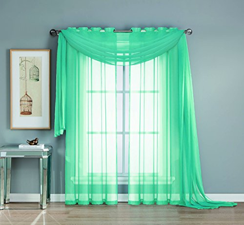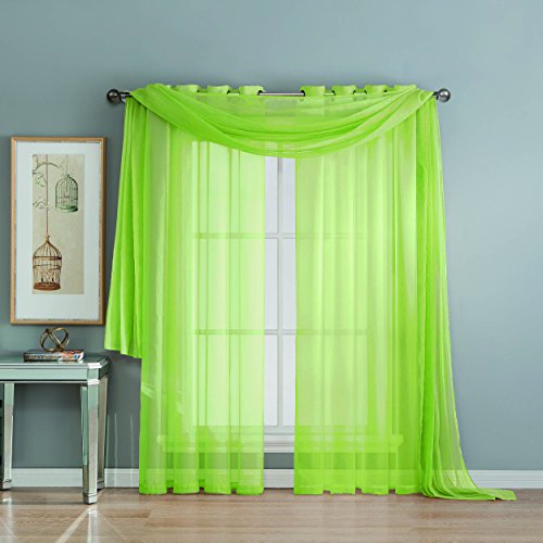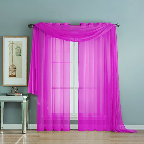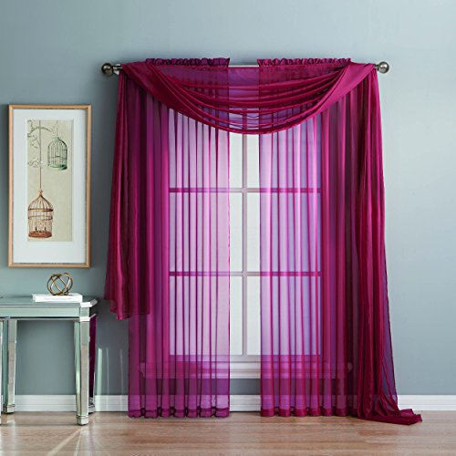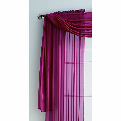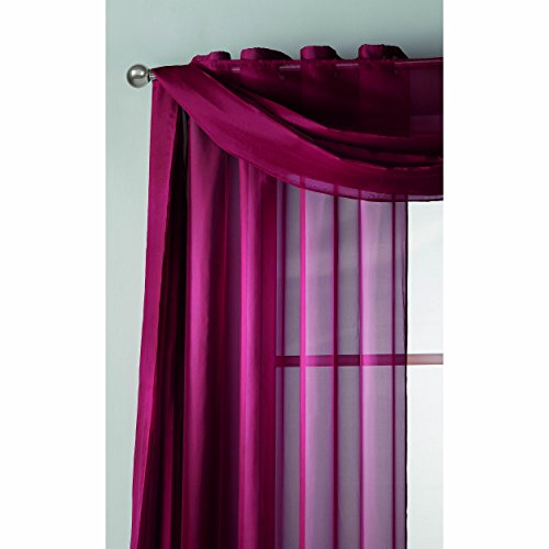 Add style and elegance to any window with a decorative sheer curtain scarf. Each solid-color scarf measures 216 in. long and can be hung on any decorative rod. Sheers gently filter light while creating a great atmosphere and can be hung in any room in your home. Add sheer drapes to your existing window treatments to create a layered ensemble or hang on their own to let in just enough light during the day and sheer coverage at night. Perfect for bedroom, living room, dining room and kitchen. Available in an array of fashion colors. Sold as single 56 in. x 216 in. scarf. Decorative rod sold separately. Coordinating sheer curtain panels sold separately. Easy care, machine wash cold, delicate cycle with mild detergent. 100% polyester. Imported.Feature