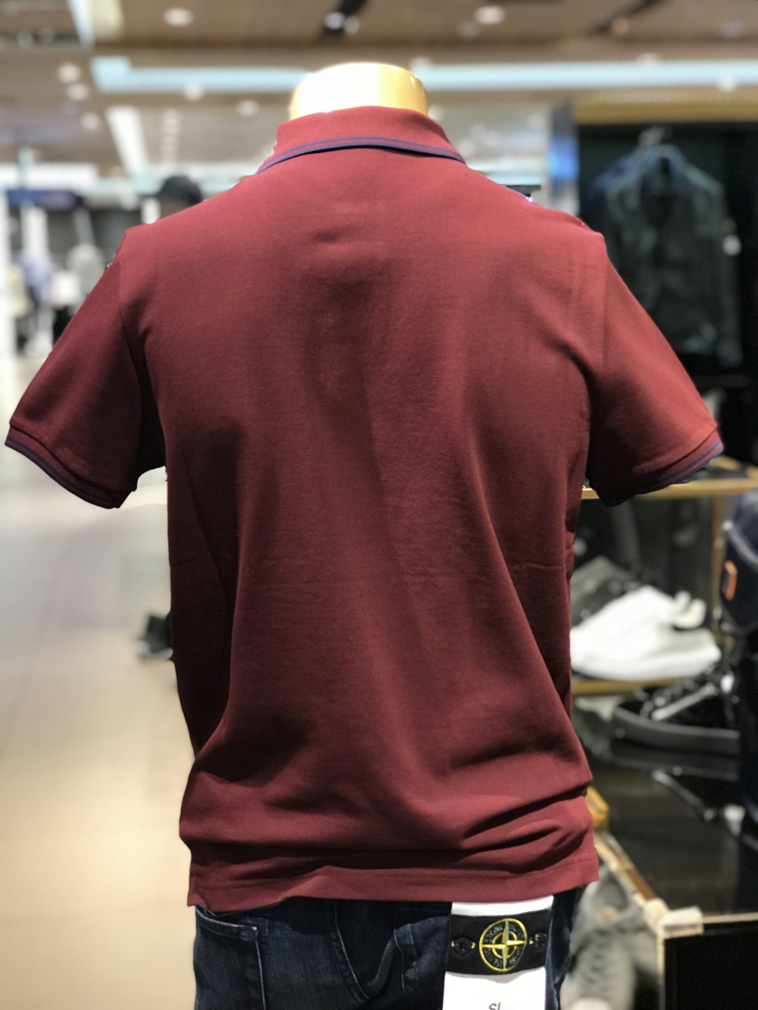 과하지않은 와인 컬러로 밝은 컬러 바지와 매치시 훌륭한 코디네이션을 보여줍니다.