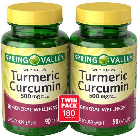 Spring Valley Whole Herb Turmeric Curcumin Dietary Supplement Capsules, 500 mg, 90 count, 2 pk