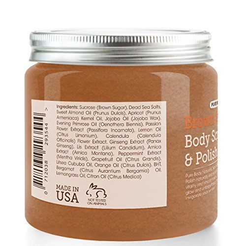 Our Brown Sugar Body Scrub hydrates and repairs, damaged skin, helping it to regain its healthy glow.It is a natural sugar exfoliant and an unrivalled treatment for supremely soft skin after just one use. Proven to have a significant moisturizing effect for 24 hours leaving your skin hydrated, smooth and refreshed giving you a healthy glow. Our sugar scrub will not only provide a fantastic cleansing exfoliation, but it will also invigorate the senses and leave an amazing sweet scent. Our Brown Sugar Scrub also has these benefits: • natural moisturiser • exfoliates to help break down the dead skin cells and remove them • can help improve areas of scarring as it helps the cell turnover • helps keep zits away • easy to rinse off does not leave any residue • smells greatFeature