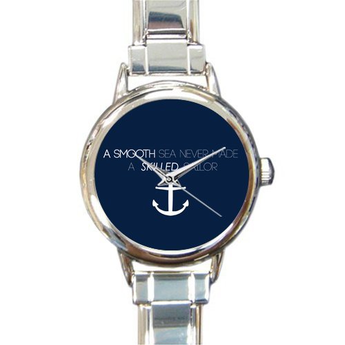 -. Title : Christmas Day Gift A Smooth Sea Never Made a Skilled Sailor Anchor Round Italian Charm stainless steel Watch