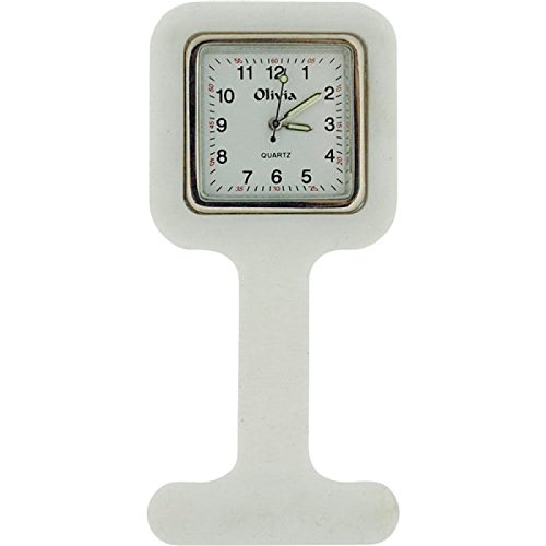 -. Title : The Olivia Collection White Square Rubber Infection Control Nurses Fob Watch