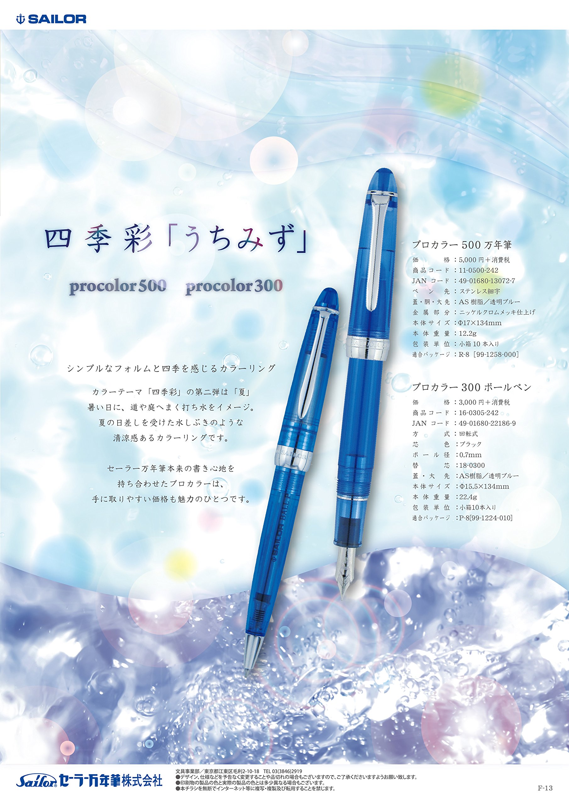 Sailor fountain pen professional color 500 watering fine print (F) 11-0500-242