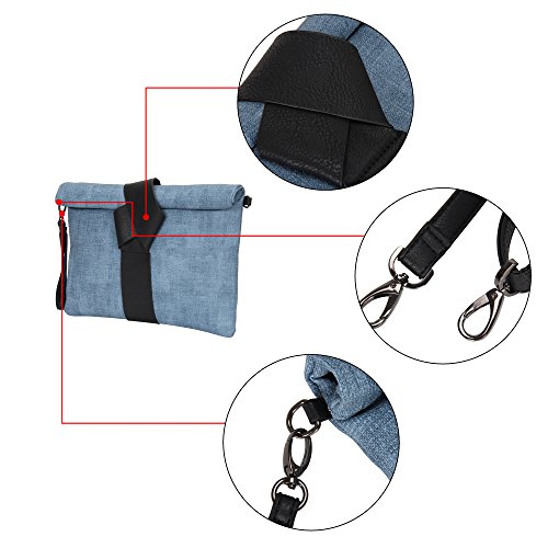 -. Feature : Top Zip Closure / Material: Synthetic Leather & Fabric Lining / Interior features: 1 spacious compartment, 1 zipper pocket, 2 slip pockets / Exterior features: Wrist strap 5.5 inches, Shoulder strap drop 22.6 inches / Approximate Dimension: 11.8L x 12.2H x 0.78W inches