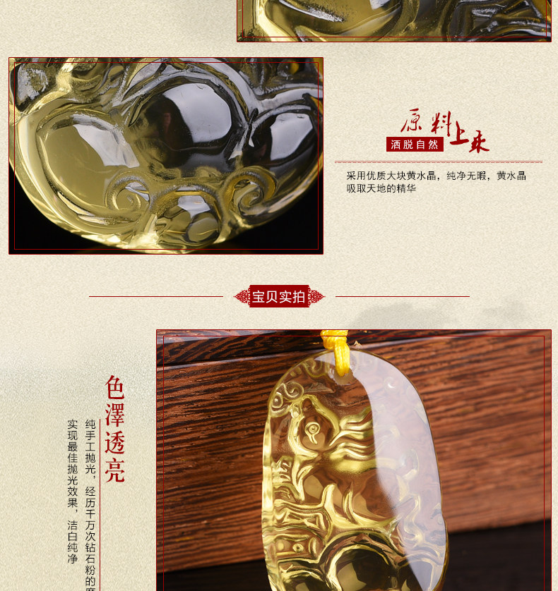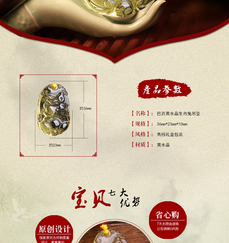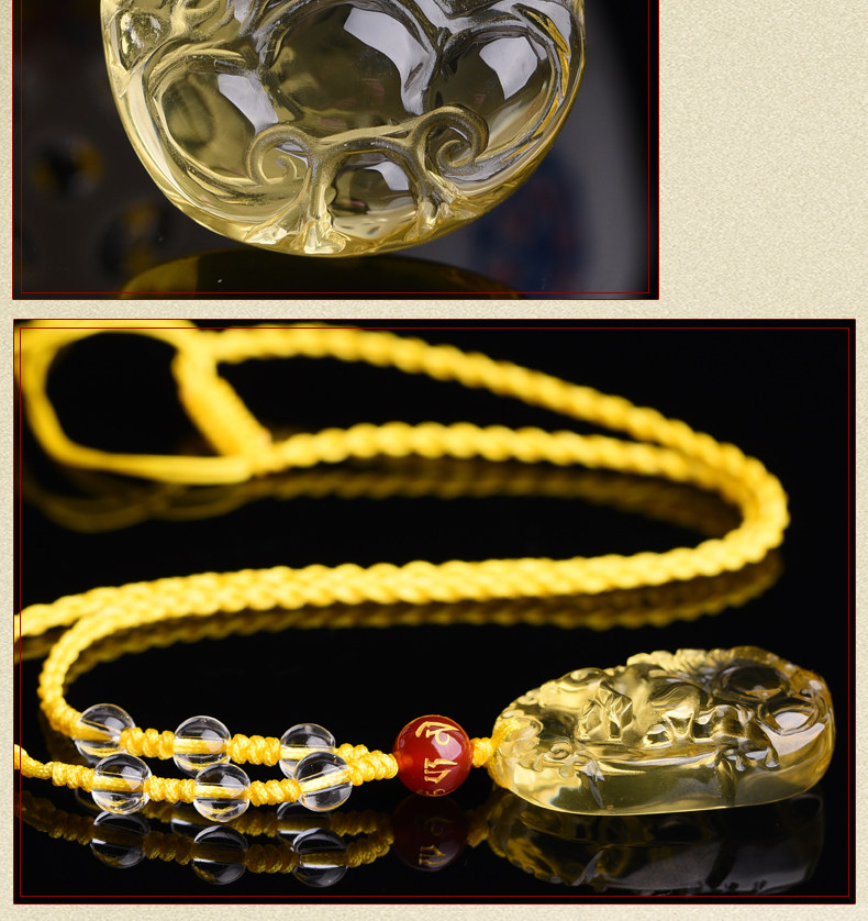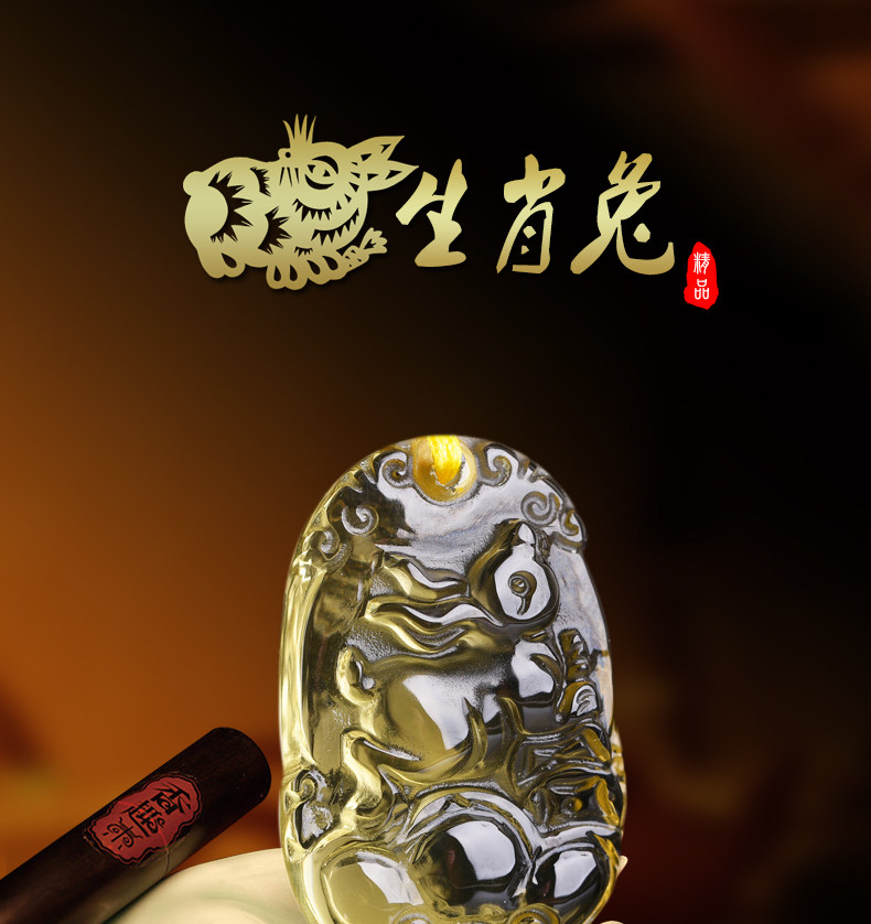 天然黄水晶吊坠 喜兔呈祥十二生肖属兔项链男女饰品项坠吉祥