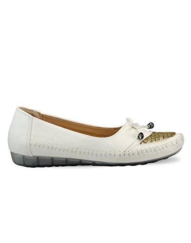 Product DescriptionColor: White Closing: Slip-on Material: Synthetic Upper Rubber Sole Heel Shape: Flat Care: Wipe with a clean cloth to remove dust.0