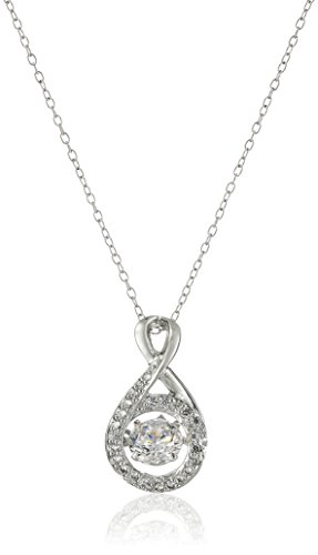 Rhodium Plated Sterling Silver "Dancing" Cubic Zirconia 6mm Pendant Necklace, 18"