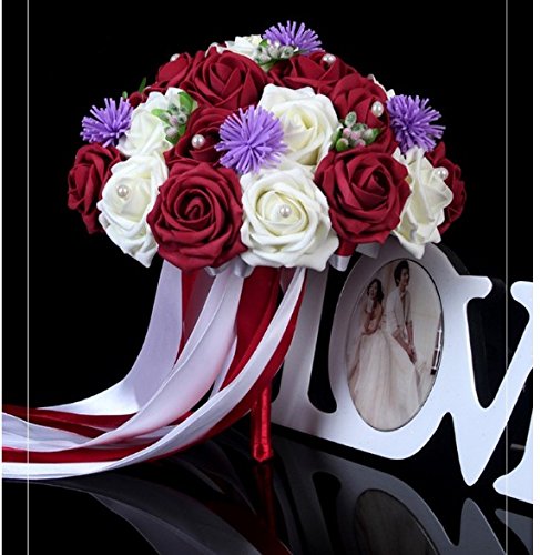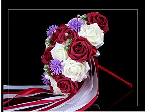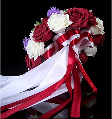 - Title : Hestian 12" Wine Red and Ivory Rose and Hibiscus Flower with Beautiful Ribbon Bridal Wedding Bouquet Silk Rose Hand Tie (30pcs Roses)