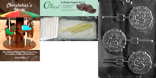 Cybrtrayd "No.80 Lolly" Letters and Numbers Chocolate Mold with Chocolatier's Bundle, Includes 25 Lollipop Sticks, 25 Cello Bags and 25 Gold Twist Ties