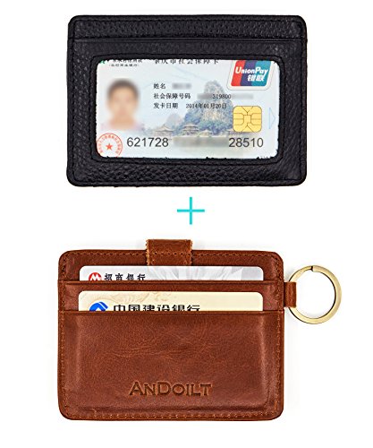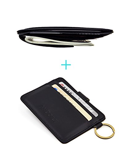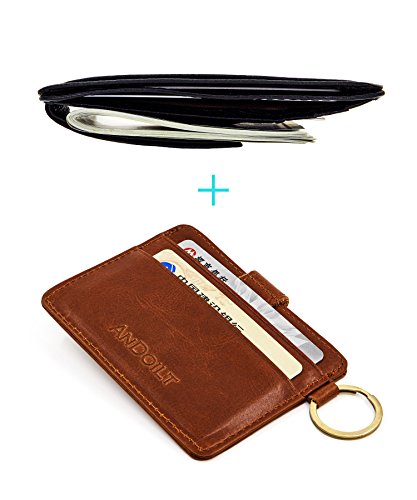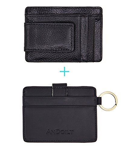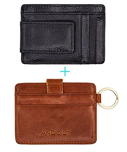 -. Title : Andoilt set of 2 Genuine Cow Leather Front Pocket Wallet Card Holder Money Clip RFID Blocking with Strong Magnetic Snap Closure