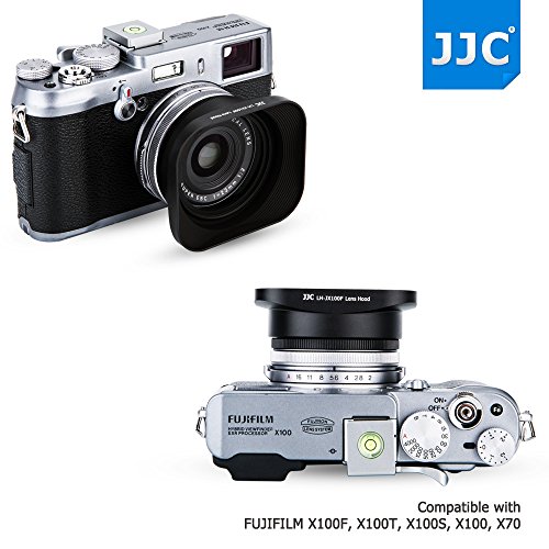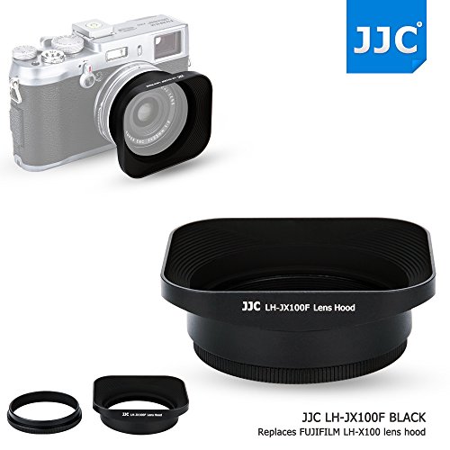JJC Black Metal Square Reversible Lens Hood & 49mm Filter Thread Adapter Ring Kit for Fujifilm X100F X70 X100T X100S X100 Digital Camera replaces Fujifilm LH-X100
