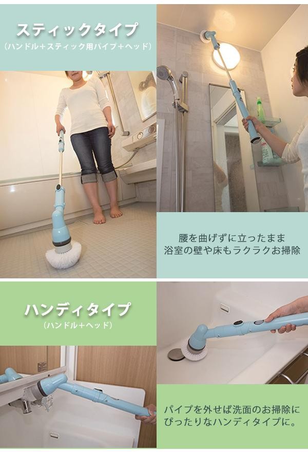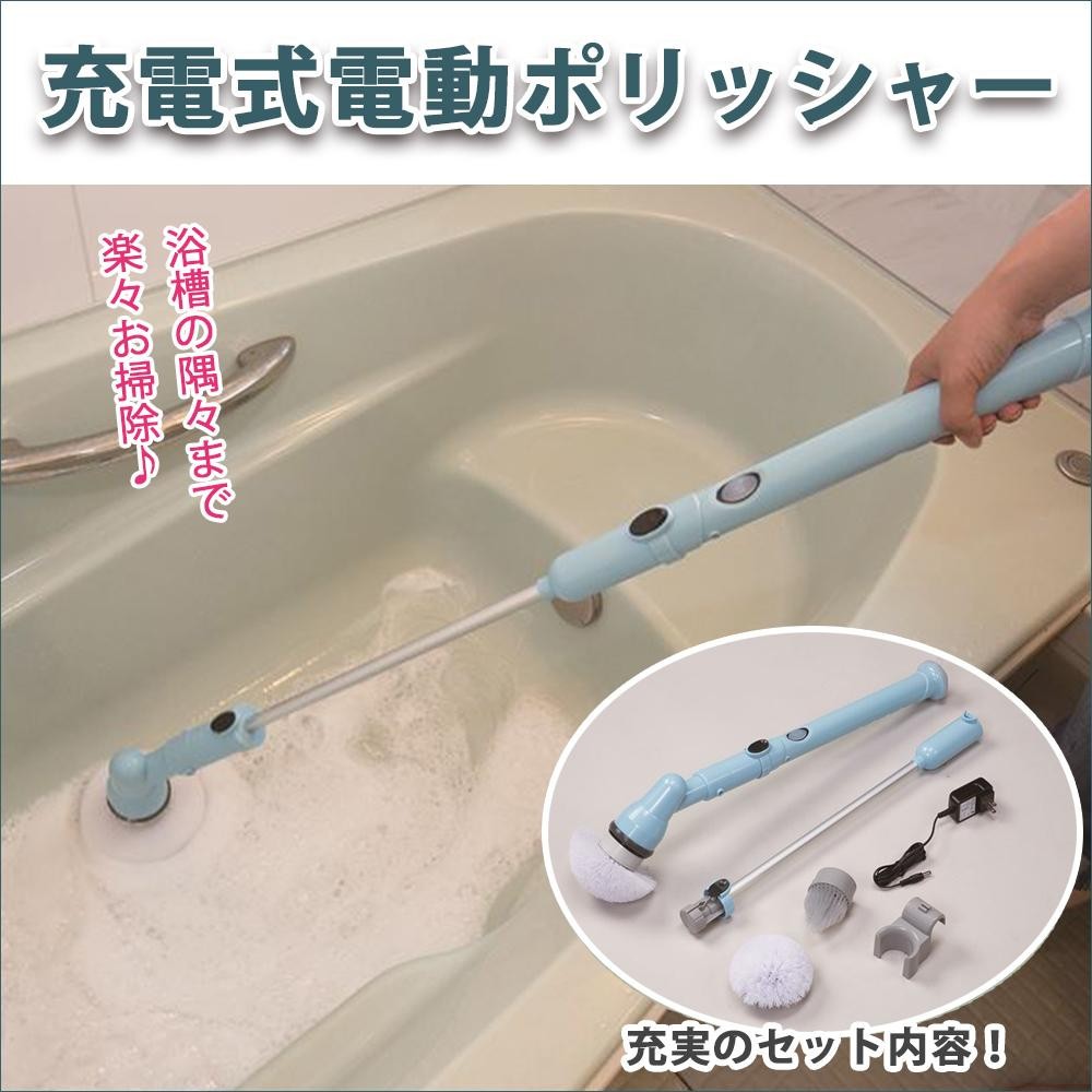 お風呂場のお掃除が楽にできる電動ポリッシャーです。腰を曲げずに立ったまま浴槽の隅々までラクラクお掃除可能です。パイプを外せば小回りの利くハンディタイプに。3種類のブラシを使い分けて洗いにくい場所もラクラクお掃除。充電式のコードレスなので持ち運びに便利です。 |
