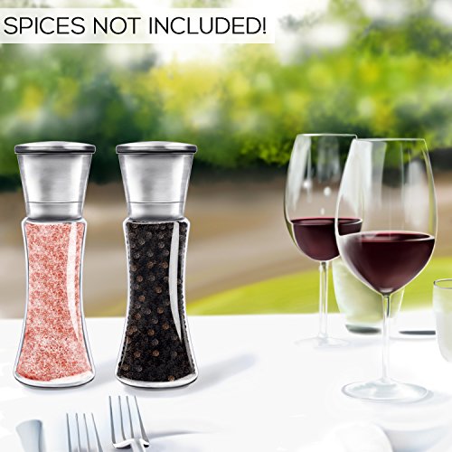 ELEGANT TABLE ENHANCEMENT-with its clear TALL body and brushed stainless steel grinder mill, this salt and pepper shaker is sure to add its elegant touch to your table