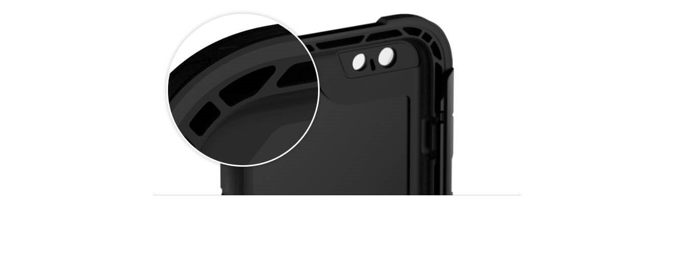 By installing a cushion structure between the case and the iPhone, a shock distribution system is adopted that avoids direct impact at the time of falling.