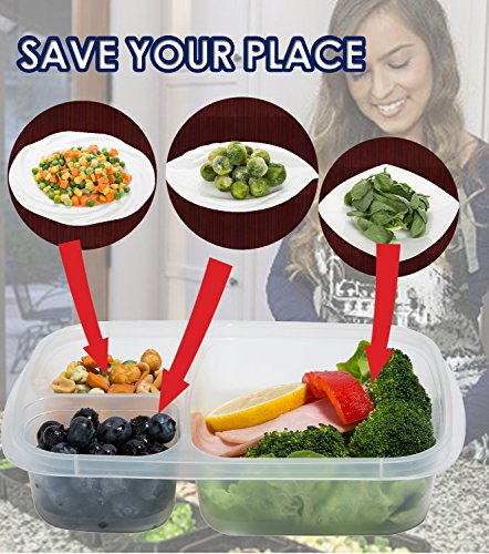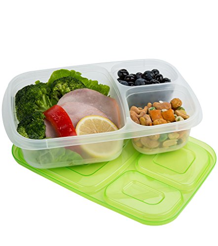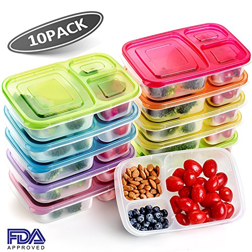 [10 Pack]Meal Prep Containers for Kids,3 Compartment Bento Lunch Box Portion Control Food Storage Containers,Microwave,Dishwasher,Freezer Safe