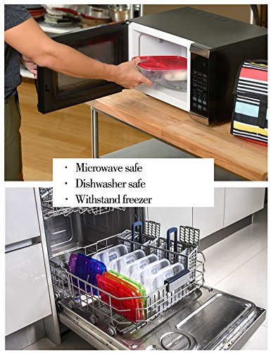 COLORFUL LIDS, KEEP FOOD MORE ORGANIZED - Unlike other bento boxes, Our meal prep containers come with brightly colored lids. Assign a different color to everyone in the family. The colored lids make your lunch time fun and simple for all ages, therefore helping keep your food more organized. Plus, the large capacity easily holds enough food to keep off hunger.