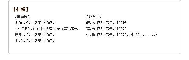 材質(掛敷共通):表・裏地-ポリエステル100%、レース部-綿65%・ナイロン35%、中綿-ポリエステル100%