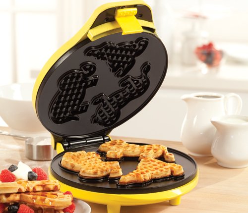 -. Feature : Makes 3 shaped waffles: clown, lion, elephant / Power and ready indicator light for easy cooking / Easy to clean / Non-stick coating / Quick and easy to use
