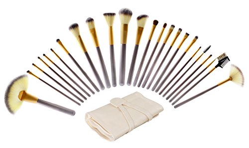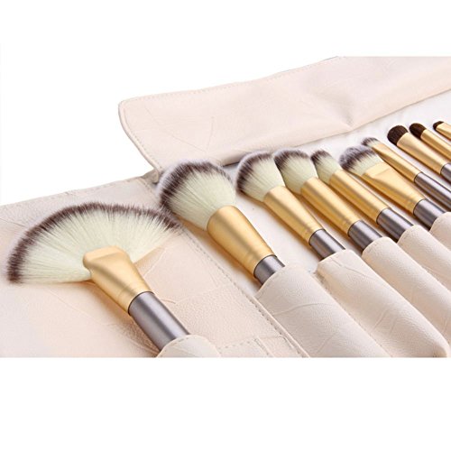 Bettyliss Synthetic Kakubi Cosmetic Makeup Brush Set with Leather Traverl Pouch - Gold