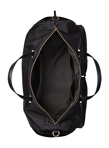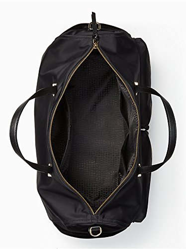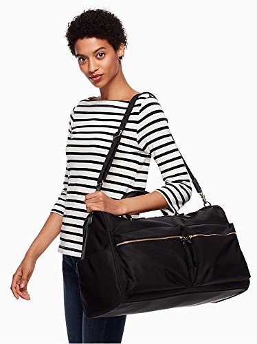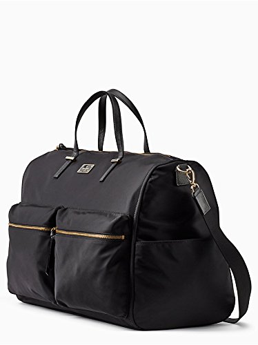 Product Description ?travel bag with zip top closure ?adjustable and removeable shoulder strap ?two exterior zipper pockets ?slide pockets on exterior sides ?dual interior slide pockets and zipper pocket ?dust bag not included ?imported ?12.6"h x 19.7"w x 8.7"d ?drop length: 5.1" handheld, 41" adjustable strap MATERIAL ?nylon ?capital kate jacquard lining ?14-karat gold plated hardware ?style # wkru4714 0