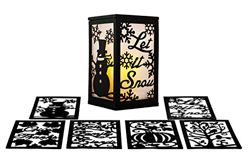 -. Title : Flameless 3 Season LED Lantern Includes Twelve Magnetic Seasonally Themed Panels