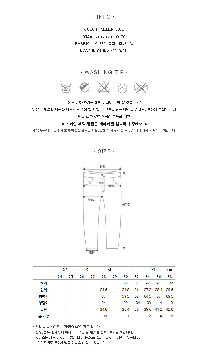 | 사이즈 | 28,30,32,34,36,38 |