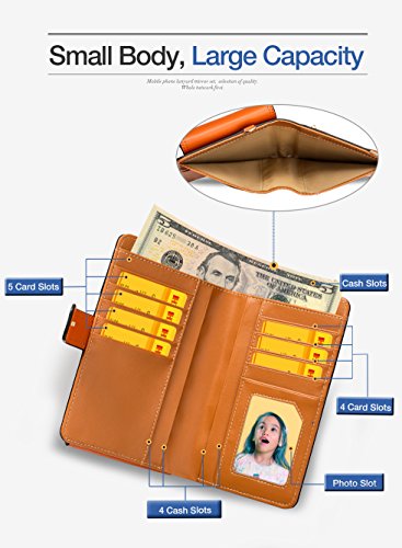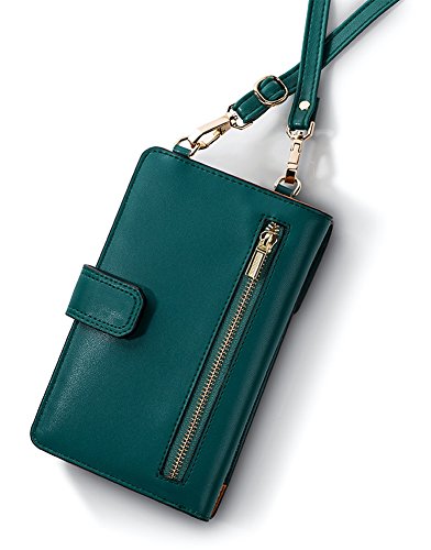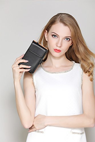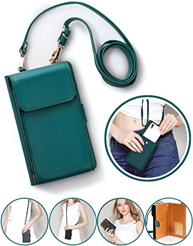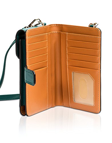 - Cross body cell phone bag whole have 10 card slots, 5 cash slots, 1 phone bag, and 1 zipper wallet, which can hold money, credit card. Spacious room with snap on closure can hold iPhone, keys, money, cards, wallet, headphones, tickets, cash, credit cards and classify your personal stuff personal small items;