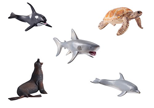-. Title : 6" Large Ocean Sea Animal Figure Plastic Mould, 5 pcs Educative Preschool Toy for Kids (Killer Whales, Sea Lions, Sea Turtles, Dolphins, White Shark)