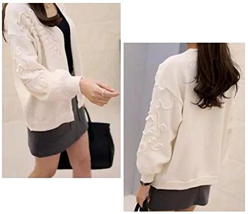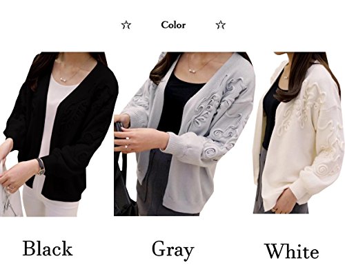 -. Feature : 【お花やリーフのようなモチーフデザインのついた、オシャレなニットカーディガン】フェミニンで、大人かわいい1着。柔らかな素材感で、優しい着心地なのも嬉しいポイント☆ / 柄のようなモチーフも、同色なので控えめな印象。なので、柄ワンピースや柄のトップスと合わせても、相性抜群です! / 腰が隠れる位のショート丈カーディガン。身長も問わず合わせやすく、どんな丈感のお洋服ともバランスが取りやすいちょうどいい丈感です。 / シンプルになりがちなパンツスタイルのアクセントに、ワンピースやスカートなどのかわいめスタイルのコーディネートに、様々なスタイリングで活躍してくれるアイテムです。 / 【カラー】白、グレー、黒 【サイズ】フリー・・・着丈50cm、バスト96cm、袖丈54cm 【素材】綿80%、ウール20%