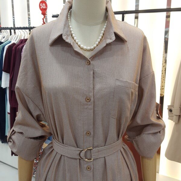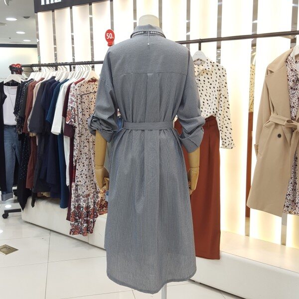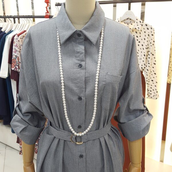 잔잔한 스트라이프 패턴의 단정한 셔츠카라스타일로 단아하면서 캐주얼하게 착용할수있는 롱원피스입니다.구김이적고 안감없이도 비침이적으며,허리라인의 골드장식의벨티드가있어 박시하게도 라인감 있는 실루엣으로도 연출할수있으며 소매롤업할수있어 활동적이고 편안하게 착용할수있는 제품입니다.