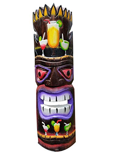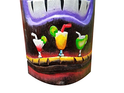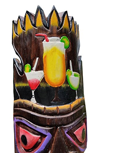 20" Custom Handcarved Wood Tiki Mask with Cocktails Tropical Hawaiian Design!