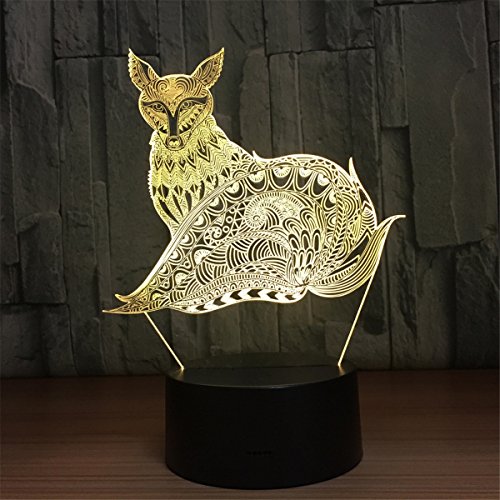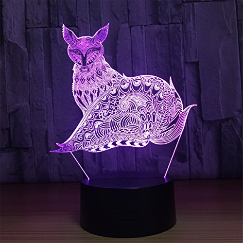 -. Title : Fox 3D Touch Optical ILLusion Night Light Stunning Visual Three-Dimensional Effect 7 Colors Changing Table Desk Deco Lamp Bedroom Children Room Decorative Nightlight for Kids