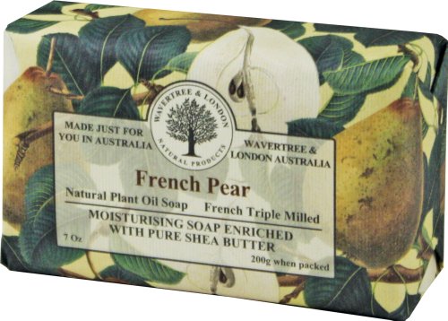 -. Binding : Misc. -. Brand : Simple Scents Australia -. Feature : •Size:7oz, wrapped with embossed paper / French-milled (triple-milled) bar that is long lasting, non-drying and has a creamy lather / 100% plant oils - sustainable palm oil, palm kernel oil, organic shea butter and vegetable glycerin. PH Balanced / Made in Australia / •Bar is mild and PH balanced which is ideal for sensitive skin and those with skin conditions -. IsAdultProduct : 0 -. Label : Australian Natural Soap -. Manufacturer : Australian Natural Soap -. MPN : WL-05 -. PackageQuantity : 1 -. PartNumber : WL-05 -. ProductGroup : Beauty -. ProductTypeName : BEAUTY -. Publisher : Australian Natural Soap -. Studio : Australian Natural Soap -. Title : Wavertree & London French Pear luxury soap (1 bar)