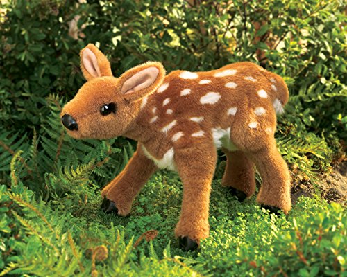 The sweet-and-gentle Fawn puppet from Folkmanis is adorably designed--from its soft vinyl nose down to its soft vinyl hooves. Big black eyes and silky spotted fabric "fur" details complete the realism of this hand puppet. Ideal for use in interactive stage and puppet theater, Folkmanis Puppets are also great for teaching, daycare, school, pretend play, games and parties, or to pair with a book for storytelling. Easy to feed and care for, just add lots of love and snuggly fun. This puppet measures 13 x 5 x 9 inches (LxWxH). Folkmanis has been encouraging young imaginations to blossom since 1976 with its innovative and engaging specialty puppets, promoting creativity and discovery while winning nearly every industry, child development, and kid-tested award. Folkmanis has grown to become the premier manufacturer of plush puppets worldwide, offering over 200 of the most heartwarming and realistically designed creatures--both exotic and familiar--on the market today. (Birthday: July, 2007).Feature