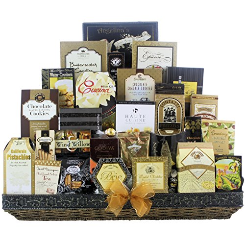 -. Feature : Impress your most important clients, or your family and friends with this elegant, upscale gourmet gift basket / Includes a large assortment of premium, gourmet chocolates, cookies, cheeses, crackers, meat, nuts, snacks, candy and more / Features premium chocolates from Godiva, harry & David, lindt and Ghirardelli