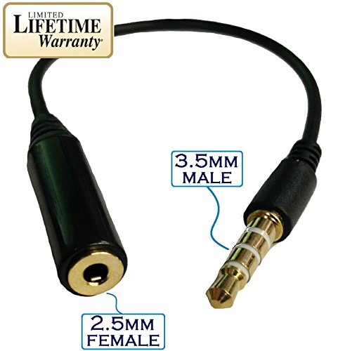 -. Feature : Black Connector Plug Provides Great Clear Audio Quality / 3.5mm Male to 2.5mm Female adapter lets you use 2.5mm earphones with most phones / 4-pole adaptor as used in many of today's smartphones / Terminated with a 3.5mm socket to listen to MP3s or radio / Compatible with Apple iPhone, iPad, iPod, Samsung Galaxy Phones, Galaxy Note Phablets, HTC, Nokia & Most other Smartphones & Tablets