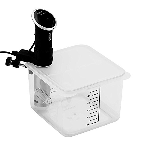 No Bag Clamps Required, Flexible BPA free plastic lid clamps vacuum sealed bags to the container firmly to avoid bags from swimming in the bath.
