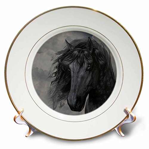 3dRose cp_172942_1 A Black Frisian Horse Portrait in a Cloudy Sky-Porcelain Plate, 8-Inch
