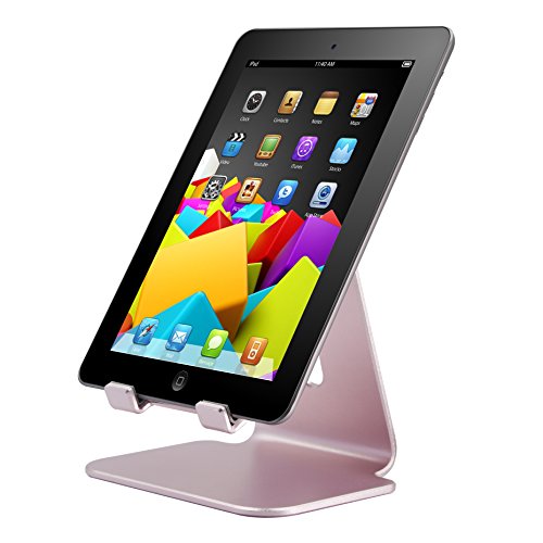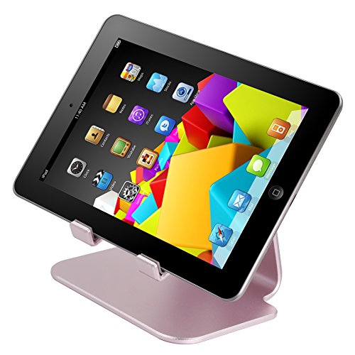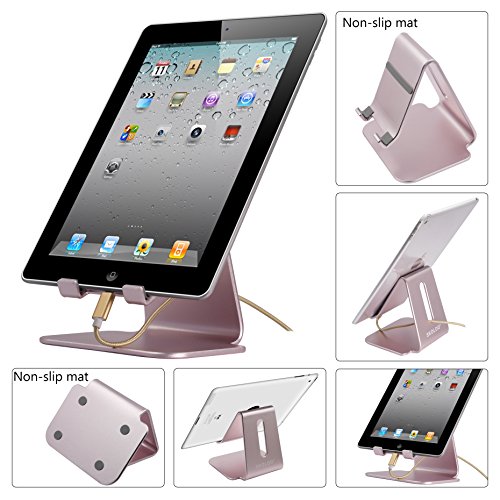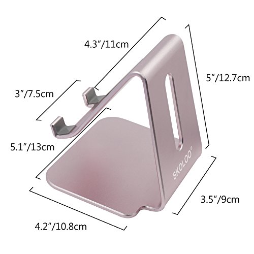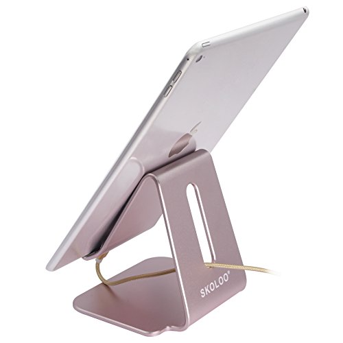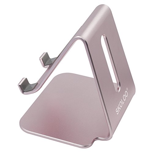 Skoloo [Fat Fooot] Stable Large Syn-Charge Desk Desktop Mobile Cell Phone Holder Tablet Stand Cradle Mount for Apple iPad / mini iPhone Cellphone Smartphone E-reader iPod, Aluminum Alloy / Rose Gold