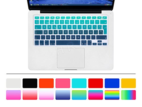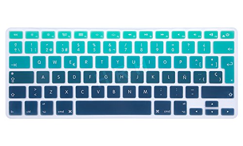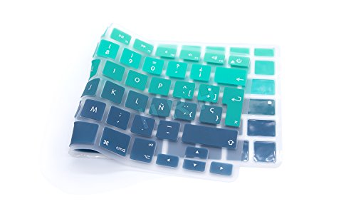 Title : HRH Spanish Silicone Keyboard Cover Skin for MacBook Air 13" MacBook Pro with or without Retina Display 13"15" 17" Apple Wireless Bluetooth Keyboard MC184LL/B European/ISO Layout-Gradient Green