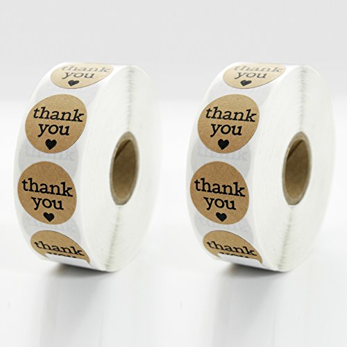 Premium Thank You Sticker Roll By TotalPack - 1000 Round 1 Inch Self-Adhesive Stickers Pack - Great For Stationaries, Gift Bags, Party Favors, Bridal Showers, And More! - Kraft Paper Color, 2 Rolls