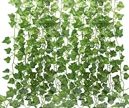 Artificial Plants 12 Strands 80-Ft Ivy Silk Greenery Fake Hanging Vine Home Garden Wall Decoration Wedding Party Plant Leaves Garland