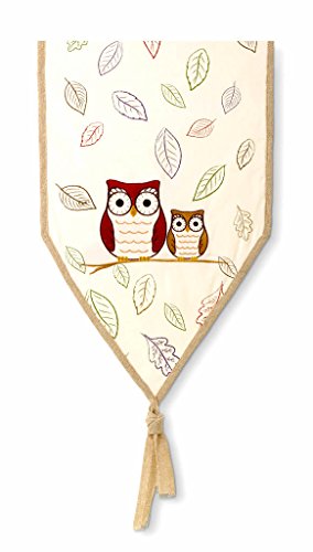 - Features embroidered owls in fall colors - the larger is cranberry, the smaller is brown
