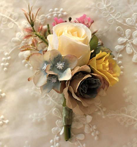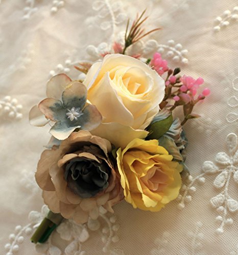 [Product Information]- Made of several real looking flowers,decorated with small flowers and greenery, high quality satin and cloth