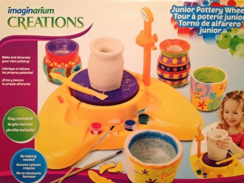 Make and decorate your own pottery with the Imaginarium Junior Pottery Wheel! The Imaginarium Junior Pottery Wheel includes: Rotating pottery wheel Four 2.5 mL tubs of paint 2 sculpting tools 500g of clay cutting tool 2 paint brushesFeature