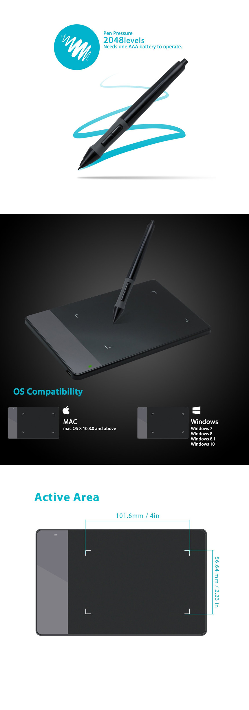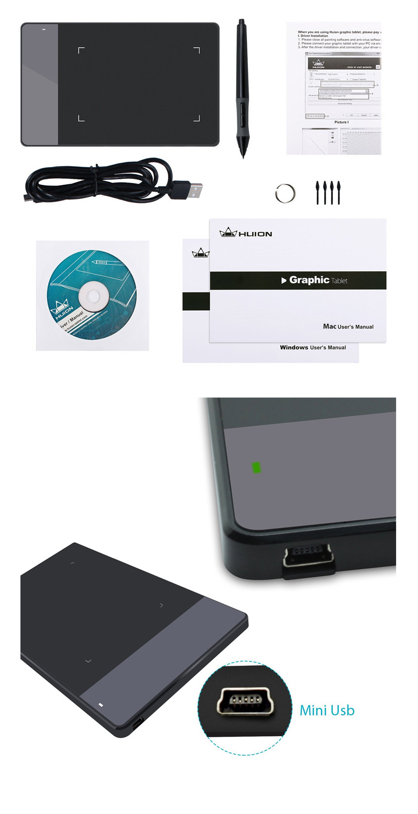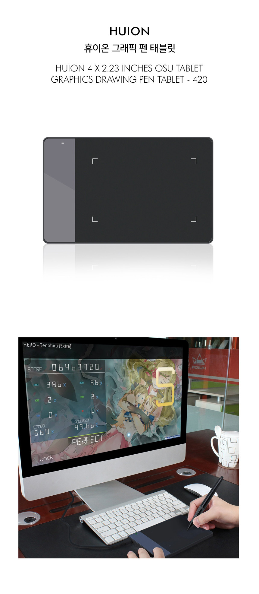 휴이온 그래픽 펜 태블릿 Huion 4 x 2.23 Inches