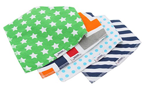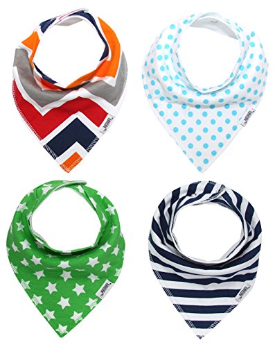 • CUTE & COMFORTABLE BABY BANDANA BIBS - Modern set of 4 trendy unisex bibs. Neutral patterns look great on both boys and girls. Ultra comfortable design with baby in mind. Your baby will be drooling in style!