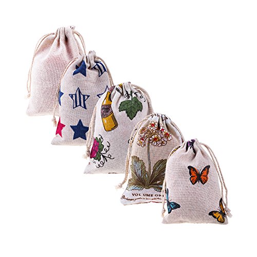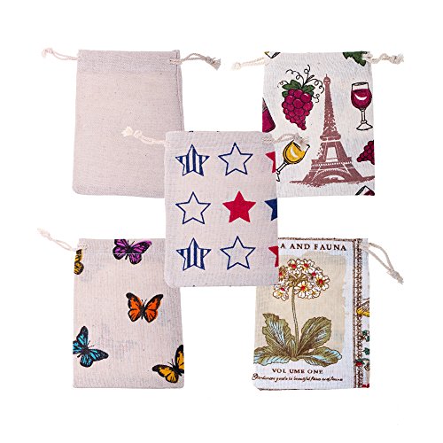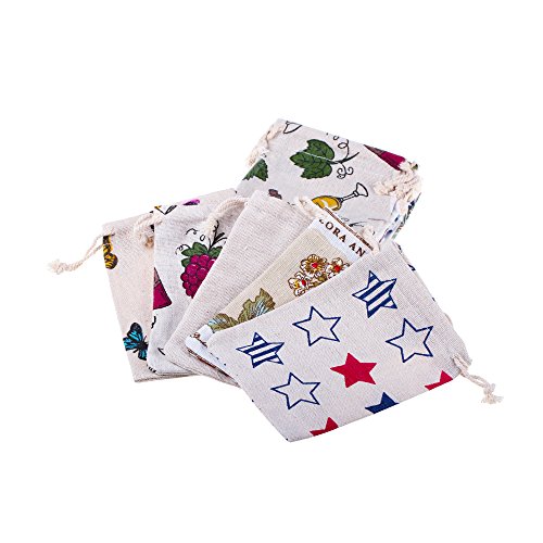 SHOW Print pattern Linen Drawstring Gift Bags Hessian Jewelry Sacks Party Favor Bags (13.5*9.8CM * 10PCS) (Set)